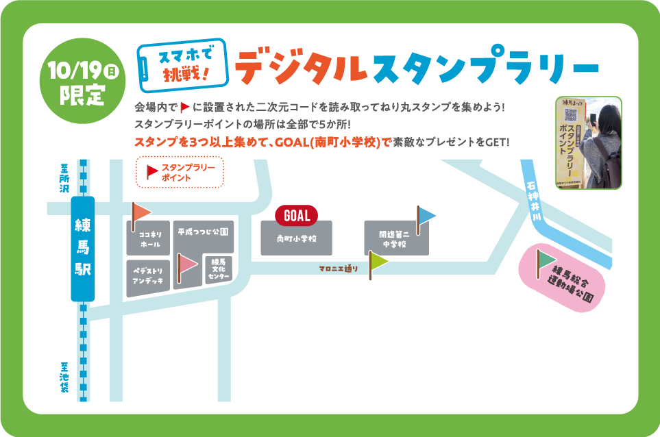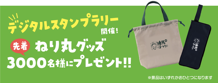 10月19日(日)限定でデジタルスタンプラリーを開催します。素敵なねり丸グッズ2種(各1500個)の中から1つ、先着3000名にプレゼントします。
